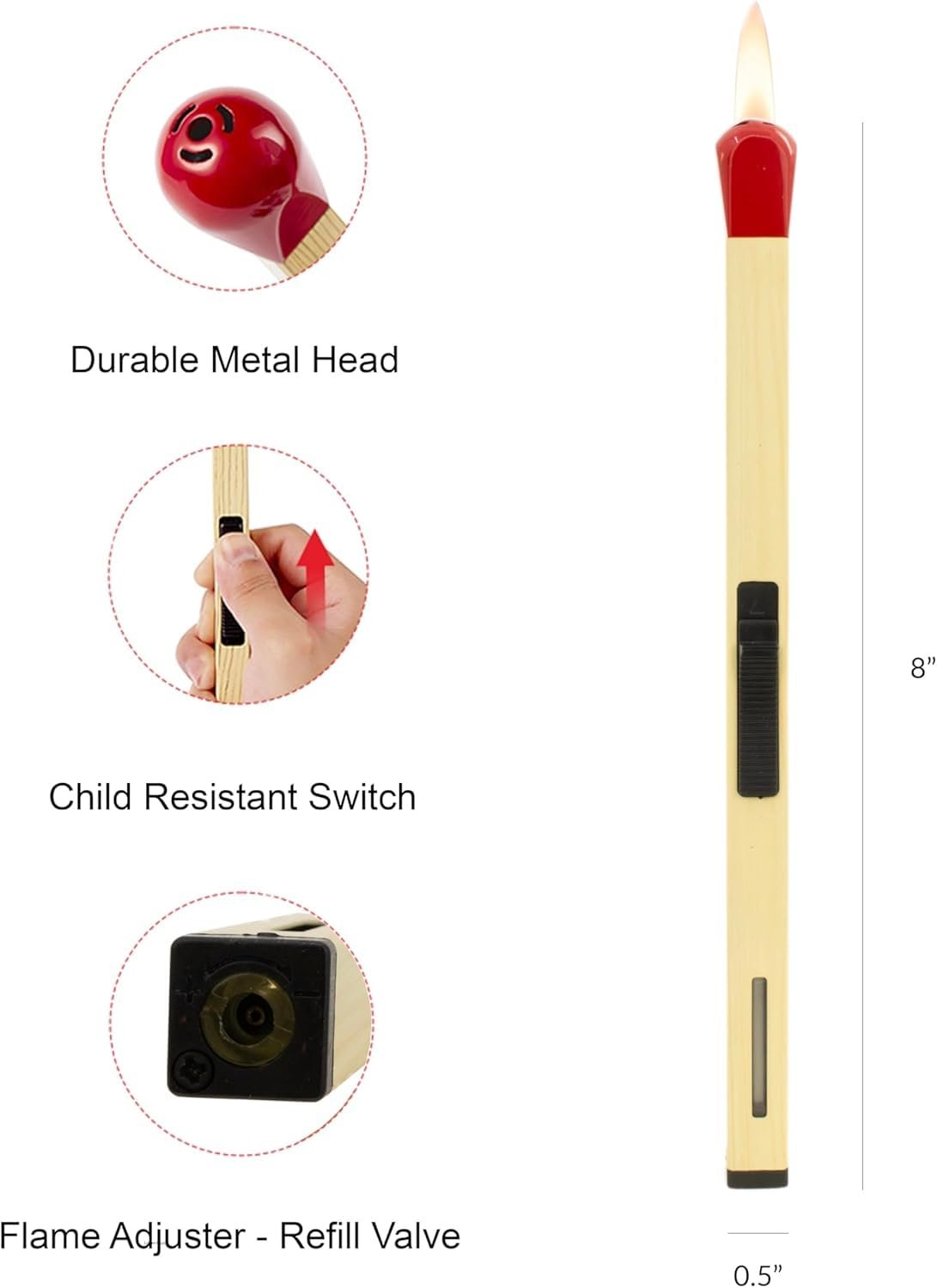 • عنق مرن دوار 360 درجة – مصمم بذراع معدني قابل للانحناء يدور 360 درجة، مما يتيح لك الوصول إلى الشموع والشوايات والمواقد بأمان. مثالي للأماكن الضيقة أو العميقة التي لا يمكن للولاعات التقليدية الوصول إليها – آمن ومتعدد الاستخدامات.