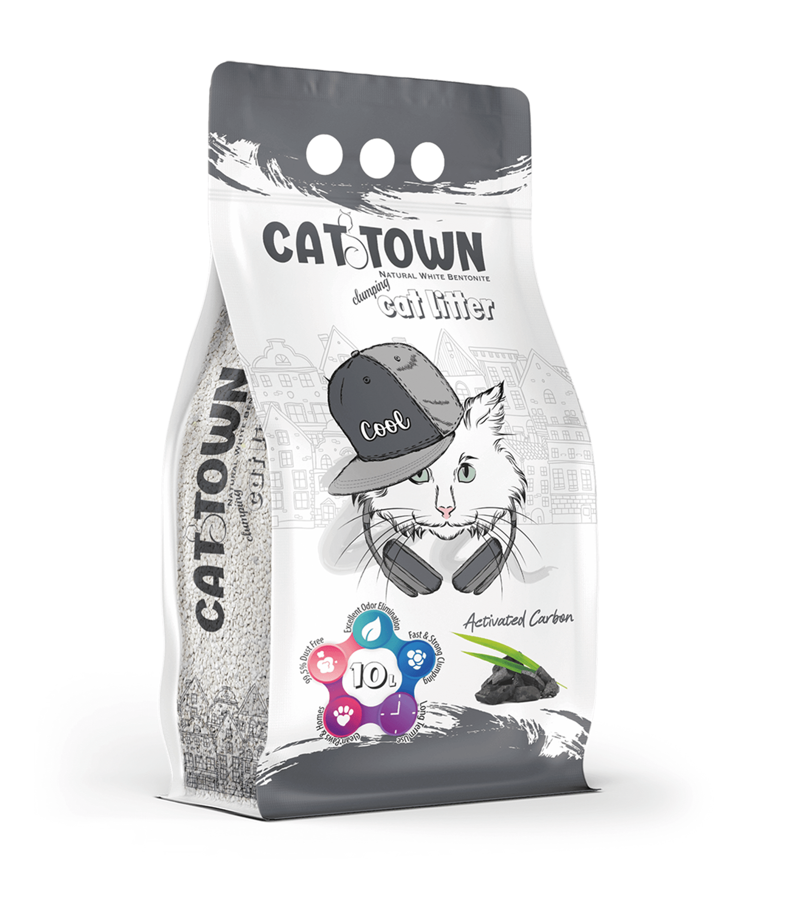 قدّم لقطّك تجربة نظافة متقدمة مع رمل Cat Town المدعّم بالكربون النشط، والمصنوع من البنتونيت الأبيض الطبيعي 100%.