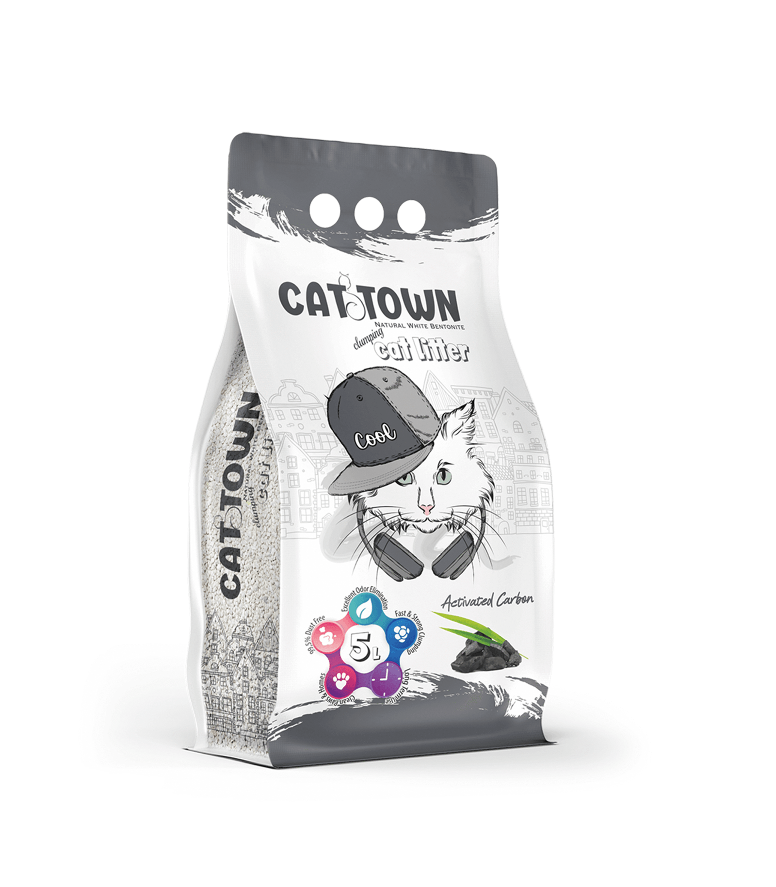 قدّم لقطّك تجربة نظافة متقدمة مع رمل Cat Town المدعّم بالكربون النشط، والمصنوع من البنتونيت الأبيض الطبيعي 100%.